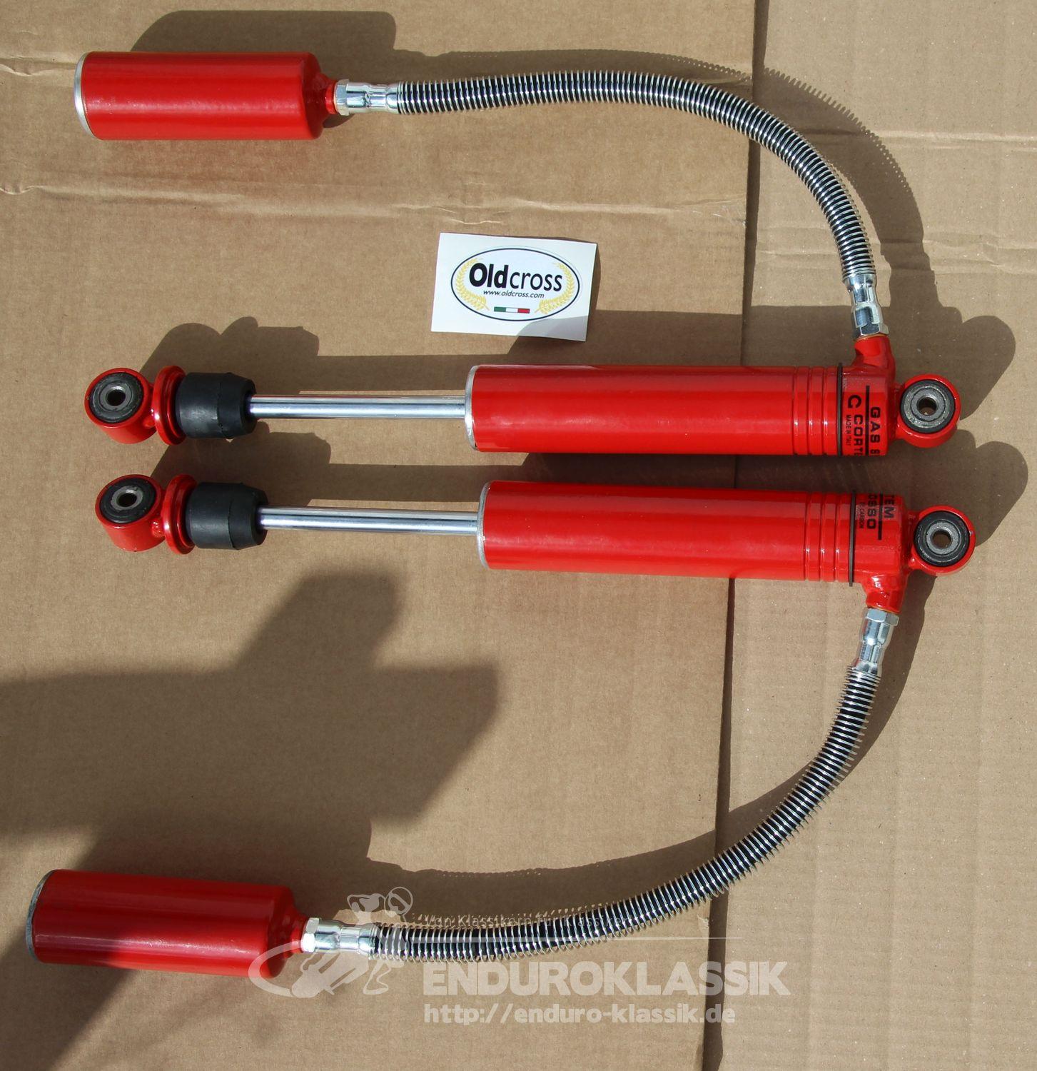 Über historische Enduromotorräder wird bei Klassik Enduro-Veranstaltungen viel und oft auch strittig diskutiert, insbesondere wenn es um Fragen der Originalität geht. Eines der Kernelemente wird bei diesen Diskussionen allerdings oftmals ausgeblendet oder auch sehr gerne vernachlässigt. Es sind die Stoßdämpferelemente der Twinshocker, die sich meist relativ gut hinter den Seitenverkleidungen verstecken. Denn bei genauer Betrachtung sind zwischenzeitlich oftmals dort, wo einst die legendären 4fach verstellbaren Nutringdämpfer ihre Arbeit erledigt haben, längst moderne Elemente mit Zug- und Druckstufenverstellung montiert. Nun ja, „Vintage“ ist das nicht unbedingt, denn außer der meist identischen Einbaulänge ist da nichts zeitgenössisches mehr gegeben. Da fragt man sich als Betrachter natürlich, ist das den zwingend erforderlich, zumal die neuen modernen Dämpferelemente ja meist schon ein stattliches Sümmchen des Budgets verschlingen und im Klassik-Geländesport mit den meist gefahrenen Acker- oder Wiesenprüfungen gar nicht zwingend ihre technischen Vorteile ausspielen können. Eine Revision von alten Stoßdämpfern macht deshalb durchaus Sinn, weil es mehr als nur eine preiswerte Alternative ist. Paolo Rovini aus Uzzano-Pistoia/Italien hat sich mit seiner Firma „oldcross.com“ auf den Service und die Reparatur der alten Twinshock-Schätze der Marken Corte&Cosso, Marzocchi, Öhlins, Bilstein und auch Ceriani Gabeln spezialisiert. Er führt alle notwendigen technischen und natürlich gerne auch optischen Reparaturen fachmännisch durch und verfügt zudem über ein enormes Ersatzteillager. Mit zuverlässigem Emailkontakt und Übersetzungsprogramm lassen sich sprachliche Hürden schnell überwinden und auch der Warenversand zwischen der Toskana und Deutschland klappt hervorragend. Zudem ist Paolo Rovini mit einem großen Ausstellungsstand stets bei den großen Teilemärkten (z.B. Novegro oder Veterama) vertreten und kann somit auch persönlich kontaktiert werden. Wir hatten die Gelegenheit, den Reparaturservice von „oldcross.com“ nun mehrfach mit Produkten verschiedener Marken zu testen und können als Resümee festhalten. Eine neue Aufbereitung der alten historischen Federelemente ist eine durchaus erstrebenswerte Sache. Das Preis-, Leistungsverhältnis von oldcross.com ist ausgezeichnet. Die revidierten Dämpferelemente sind technisch und optisch absolut auf dem Topniveau von Neuware.