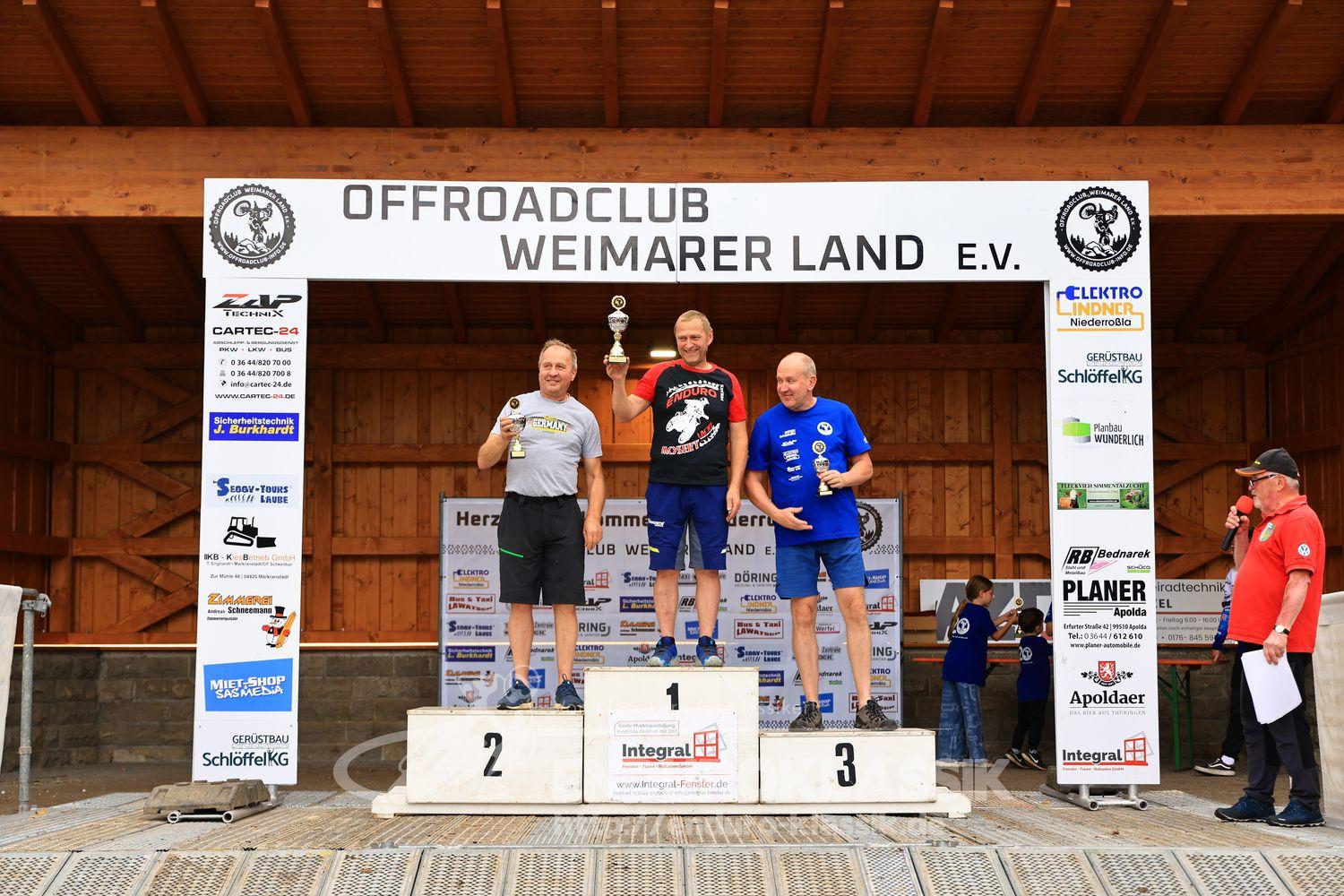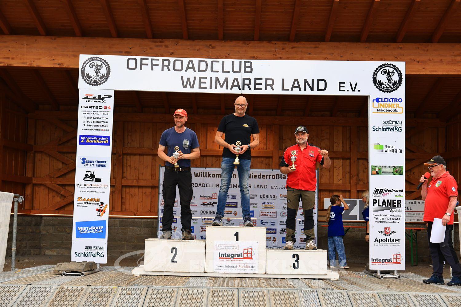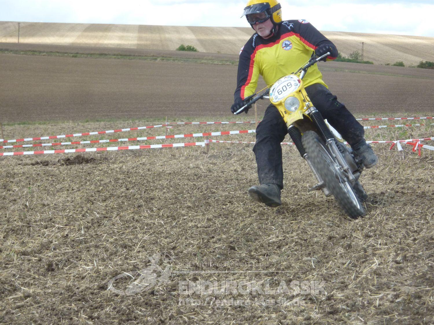Für die 20. Jubiläums-Classic Geländefahrt im Weimarer-Land hat sich der Offroadclub Weimarer-Land einige Überraschungen und ein tolles Rahmenprogramm einfallen lassen. Neben vielen Ehrungen und einem musikalischen Festprogramm, betraf das auch die ca. 35 Kilometer lange Streckenführung rund um Niederroßla, welche diesmal in entgegengesetzter Richtung dreimal zu absolvieren war. Neben vielen Wegen über die Höhenzüge der Region mit tollem Weitblick gab es erneut eine große Anzahl an anspruchsvollen Waldpassagen und viele enge Trails mit mitunter knackigen Auf- und Abfahrten. Durch eine großzügige Ausschilderung mit angebotenen Umfahrungsmöglichkeiten schwieriger Passagen konnte sich jeder der ca. 180 Teilnehmer den Schwierigkeitsgrad der Geländestrecke seinem eigenen Leistungsvermögen, oder dem seines Motorrades, persönlich anpassen. Das kam bei sehr vielen Teilnehmern richtig gut an. Die Rundenfahrzeit war ausreichend gewählt und hätte sicher auch für einen Regentag gepasst. Doch den gab es nicht, auch wenn es am Freitag nach den örtlichen Regenfällen in der Flur noch nicht so toll ausgesehen hat. Das Wetter am Veranstaltungstag passte perfekt und die Wege sowie die beiden Ackersonderprüfungen trockneten rasch ab und spätestens nach der noch leicht rutschigen ersten Runde präsentierte sich der Untergrund in einem perfekten und staubfreien Zustand. Manch ein Insider bezeichnet das gerne auch als „Werksboden“. Tolle Voraussetzungen also für eine echte „Jubiläumsfahrt“. Die Veranstaltung war wie schon seit eh und je erneut äußerst unkompliziert und sehr gut organisiert. Kurz nach dem Zieleinlauf des letzten Teilnehmers gab es bereits die Siegerehrung die, wie auch schon das gesamte Tagesprogramm, von Didi Clauss sehr informativ und unterhaltsam moderiert wurde. Unser Fazit zu dem sehr gelungenen Jubiläum des Offroad-Club Weimarer Land ist ein Satz, den wir am Ende des Tages von vielen Teilnehmern unisono so gehört haben: „Genau so soll Klassik Enduro sein“. Die Jubiläumsfahrt war somit auch ein gelungener Einstand für den neuen und verjüngten Vereinsvorstand des Offroadclub. Dass der Offroadclub einst mit 11 Mitgliedern startete und zwischenzeitlich auf die stolze Zahl von ca. 60 Mitgliedern gewachsen ist, ist eine schöne Entwicklung und verspricht für die Zukunft doch einiges. Neben den sportlichen Aspekten werden in dem Verein nämlich auch viele soziale und kommunale Projekte gefördert. Die Kindergartenkinder bedankten sich frühmorgens vor dem Start dafür, dass sie regelmäßig Unterstützung von den Motorsportlern erhalten und überbrachten selbstgebackenen leckeren Kuchen für die Helfer und ein schön gestaltetes Plakat. Eine tolle Sache wie wir finden und zudem eine gute Werbung für unseren Motorsport.