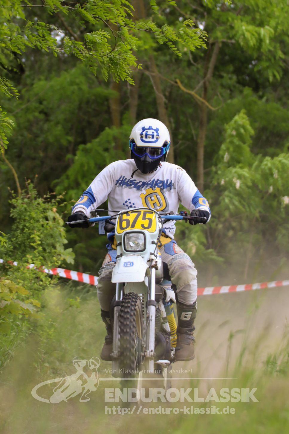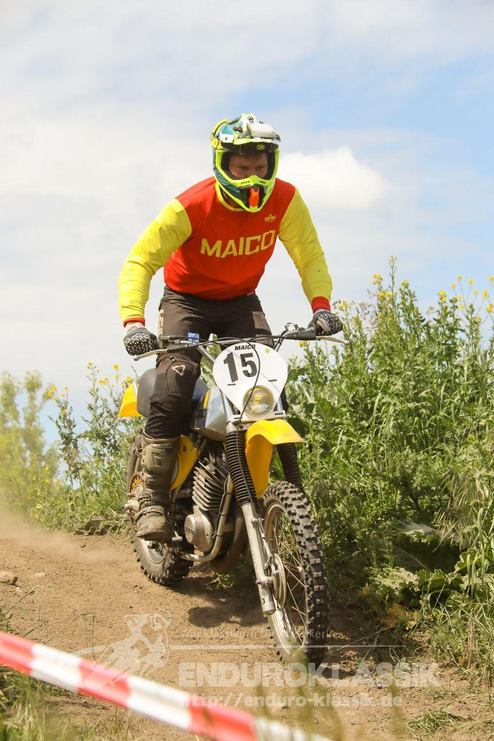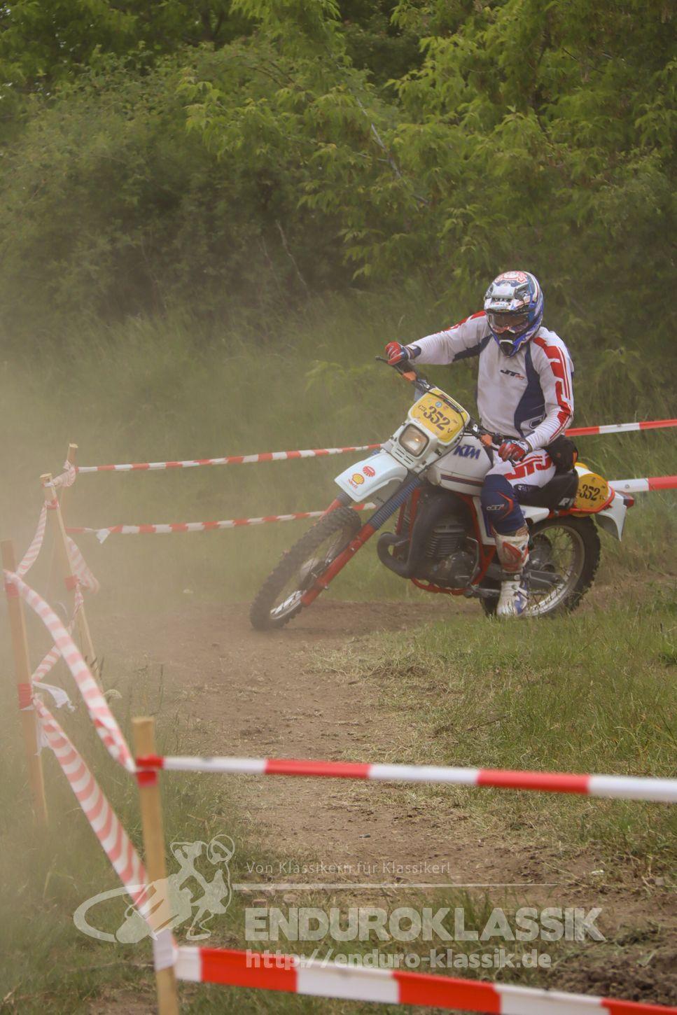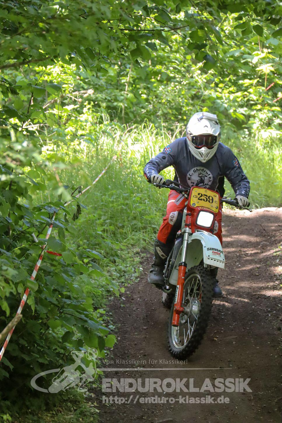 Bei bestem nordischen Wetter, viel Sonne bei einer frischen Brise, konnten mehr als 130 Teilnehmer am Samstag Vormittag ab 11 Uhr die Erste der geforderten 6 bzw. 7 Geländerunden in Angriff nehmen. Der Start erfolgte direkt neben dem neuen Fahrerlager, einer ausreichend großen, schön mit Kiessteinen befestigten Fläche, und unmittelbar angrenzend an das Hummelberg Enduro Gelände. Die von den Vorjahren bereits überwiegend bekannten Singletrails waren im Kernbereich des Waldes nochmals um einige Schleifen sowie sandige Auf- und Abfahrten erweitert worden. Das Befahren der Trails erforderte viel Geschick, gute Koordination und auch ordentlich Kondition, bei großzügig bemessenen Zeitvorgaben. Stehvermögen der Aktiven war zudem beim Absolvieren der Sonderprüfungen verlangt. Jede gefahrene Runde wurde gezeitet. Auf dem sandigen Geläuf mit Anliegern und Sprunghügeln wurden bei einer Fahrzeit von grob 4 bis 5 Minuten bei manchem zum Ende hin die Unterarme dann schon mal etwas dicker. Aber das tat insgesamt der Fahrfreude der Teilnehmer keinen Abbruch, auch wenn die Klassen mit den älteren Motorrädern, und somit mit den geringeren Federwegen, auf den besonders welligen Abschnitten mitunter schon so ihre Mühe hatten. Doch direkt nach dem Zieleinlauf konnte man sich am Imbiss mit bester Rostbratwurst oder Erbsensuppe schnell wieder stärken. Und bei der ganz zeitnah nach dem Zieleinlauf erfolgten Siegerehrung sah man dann durchwegs zufriedenes Grinsen, nach der staubigen und kräftezehrenden „Hummelberg-Intensivkur“. Gefallen hat, dass in den jeweiligen Klassen nicht nur die Plätze 1 – 3 mit schönen Plaketten ausgezeichnet wurden, sondern dass auch die Platzierungen 4 und 5 mitprämiert wurden. Eine schöne Geste, wie wir finden. Zum Auftakt in die 2025er Klassiksaison und zur persönlichen Fahrtechnik- und Konditionskontrolle war Schönebeck auf jeden Fall eine prima Sache. Den Jungs und Mädels vom MSC Schönebeck ist es gelungen, mit den vor Ort verfügbaren Gegebenheiten, für die Teilnehmer ein interessantes und wie beschrieben sehr intensives Endurosporterlebnis auf die Beine zu stellen.