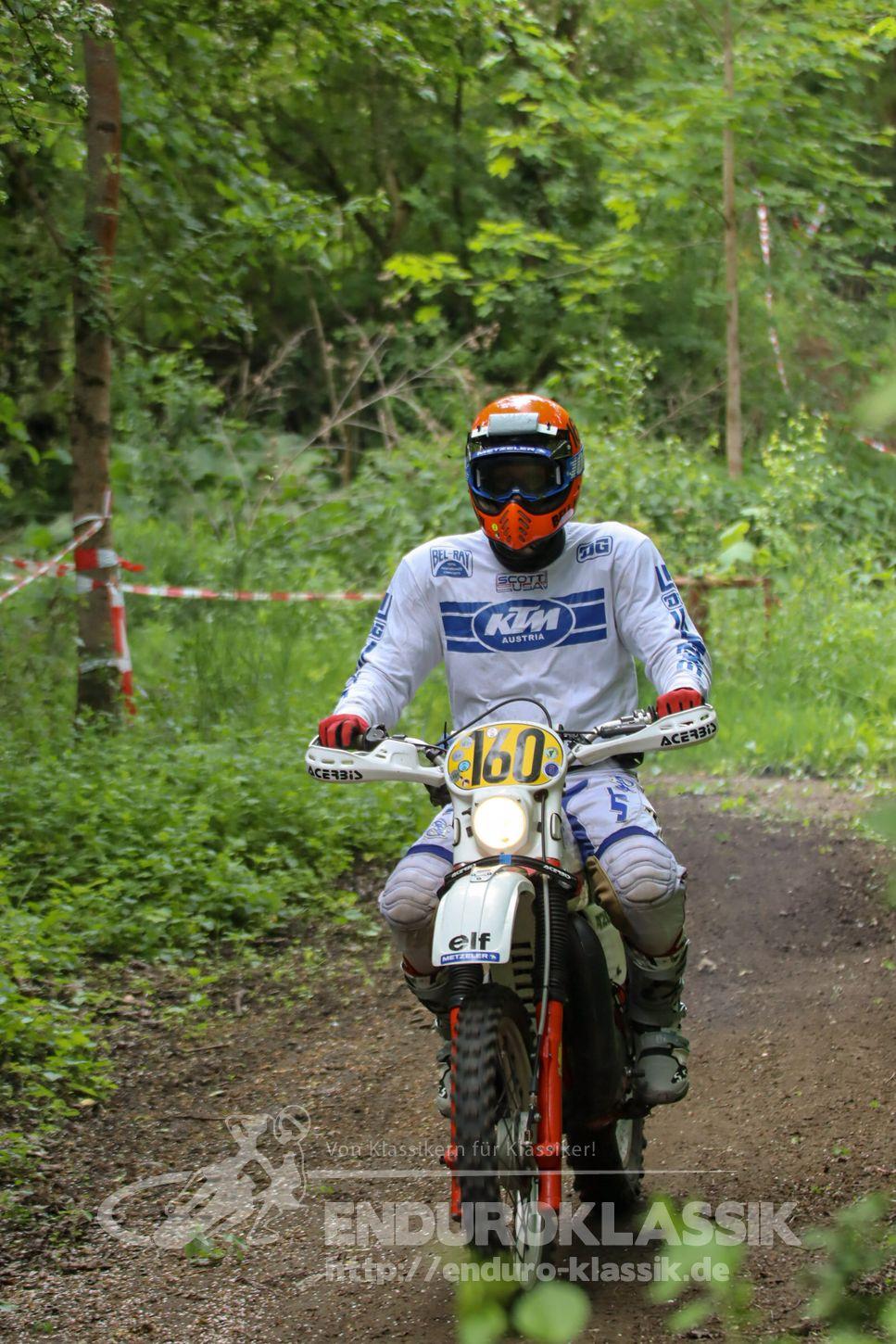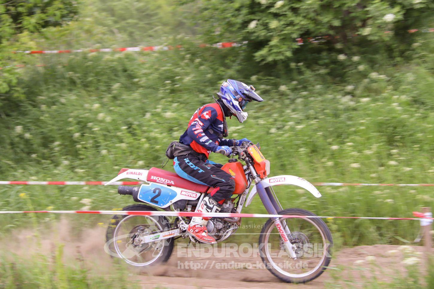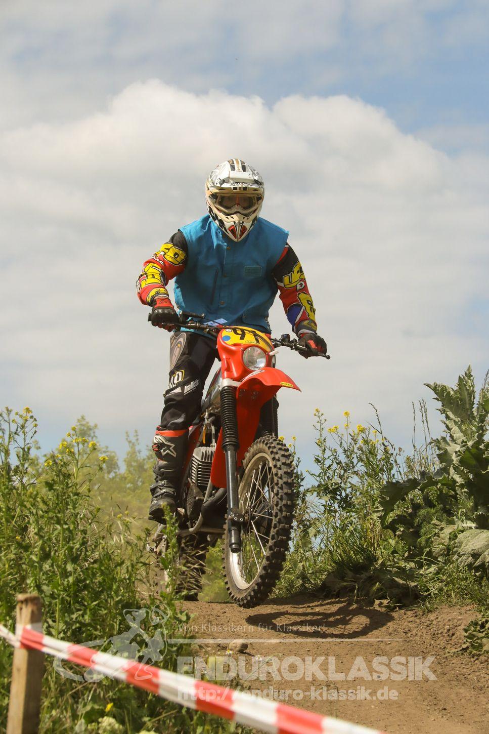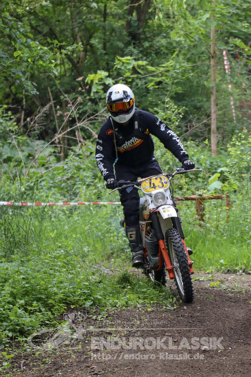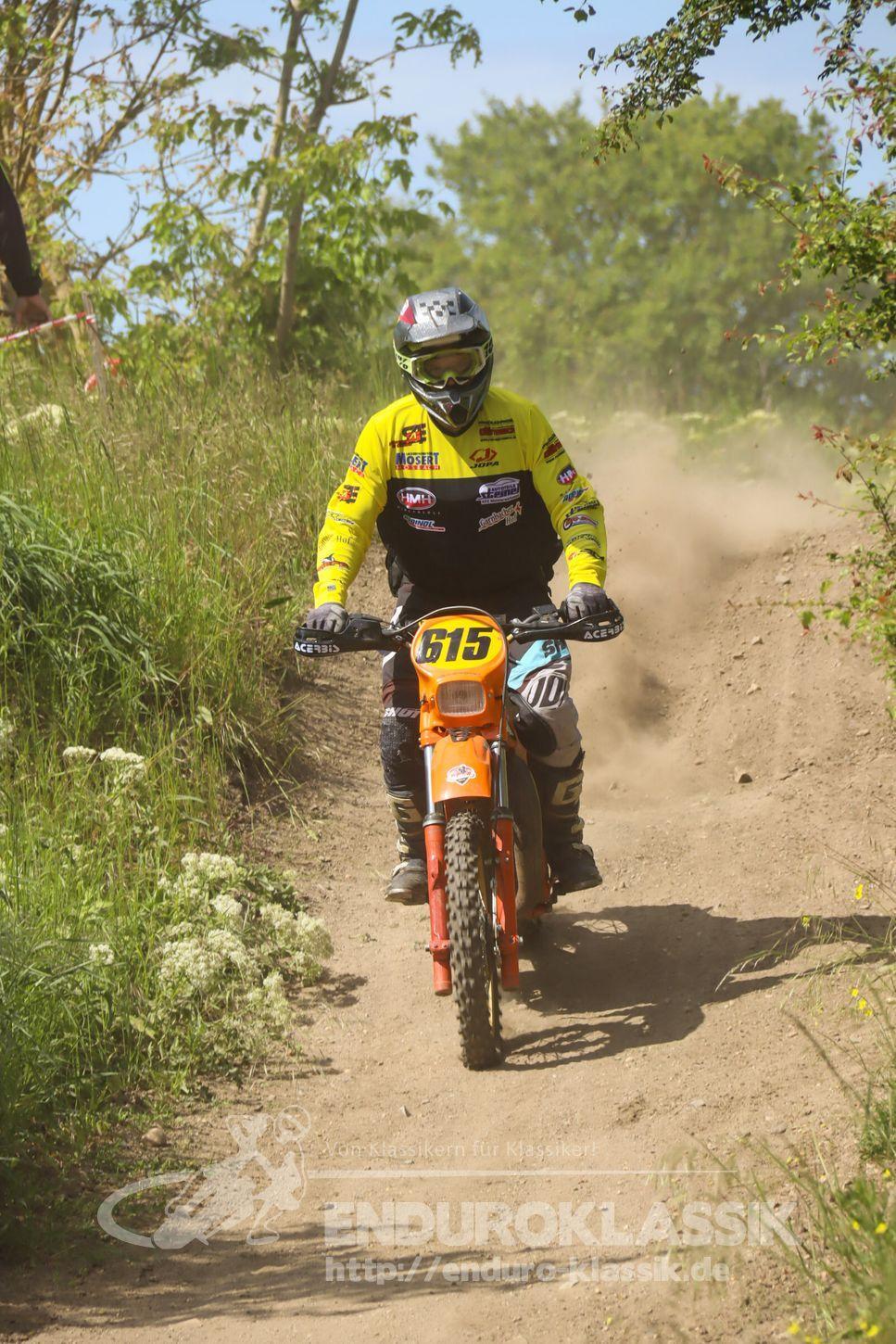 Bei bestem nordischen Wetter, viel Sonne bei einer frischen Brise, konnten mehr als 130 Teilnehmer am Samstag Vormittag ab 11 Uhr die Erste der geforderten 6 bzw. 7 Geländerunden in Angriff nehmen. Der Start erfolgte direkt neben dem neuen Fahrerlager, einer ausreichend großen, schön mit Kiessteinen befestigten Fläche, und unmittelbar angrenzend an das Hummelberg Enduro Gelände. Die von den Vorjahren bereits überwiegend bekannten Singletrails waren im Kernbereich des Waldes nochmals um einige Schleifen sowie sandige Auf- und Abfahrten erweitert worden. Das Befahren der Trails erforderte viel Geschick, gute Koordination und auch ordentlich Kondition, bei großzügig bemessenen Zeitvorgaben. Stehvermögen der Aktiven war zudem beim Absolvieren der Sonderprüfungen verlangt. Jede gefahrene Runde wurde gezeitet. Auf dem sandigen Geläuf mit Anliegern und Sprunghügeln wurden bei einer Fahrzeit von grob 4 bis 5 Minuten bei manchem zum Ende hin die Unterarme dann schon mal etwas dicker. Aber das tat insgesamt der Fahrfreude der Teilnehmer keinen Abbruch, auch wenn die Klassen mit den älteren Motorrädern, und somit mit den geringeren Federwegen, auf den besonders welligen Abschnitten mitunter schon so ihre Mühe hatten. Doch direkt nach dem Zieleinlauf konnte man sich am Imbiss mit bester Rostbratwurst oder Erbsensuppe schnell wieder stärken. Und bei der ganz zeitnah nach dem Zieleinlauf erfolgten Siegerehrung sah man dann durchwegs zufriedenes Grinsen, nach der staubigen und kräftezehrenden „Hummelberg-Intensivkur“. Gefallen hat, dass in den jeweiligen Klassen nicht nur die Plätze 1 – 3 mit schönen Plaketten ausgezeichnet wurden, sondern dass auch die Platzierungen 4 und 5 mitprämiert wurden. Eine schöne Geste, wie wir finden. Zum Auftakt in die 2025er Klassiksaison und zur persönlichen Fahrtechnik- und Konditionskontrolle war Schönebeck auf jeden Fall eine prima Sache. Den Jungs und Mädels vom MSC Schönebeck ist es gelungen, mit den vor Ort verfügbaren Gegebenheiten, für die Teilnehmer ein interessantes und wie beschrieben sehr intensives Endurosporterlebnis auf die Beine zu stellen.