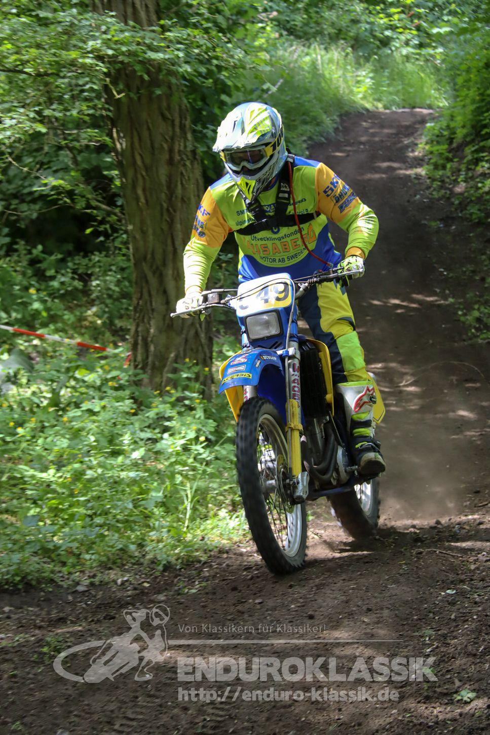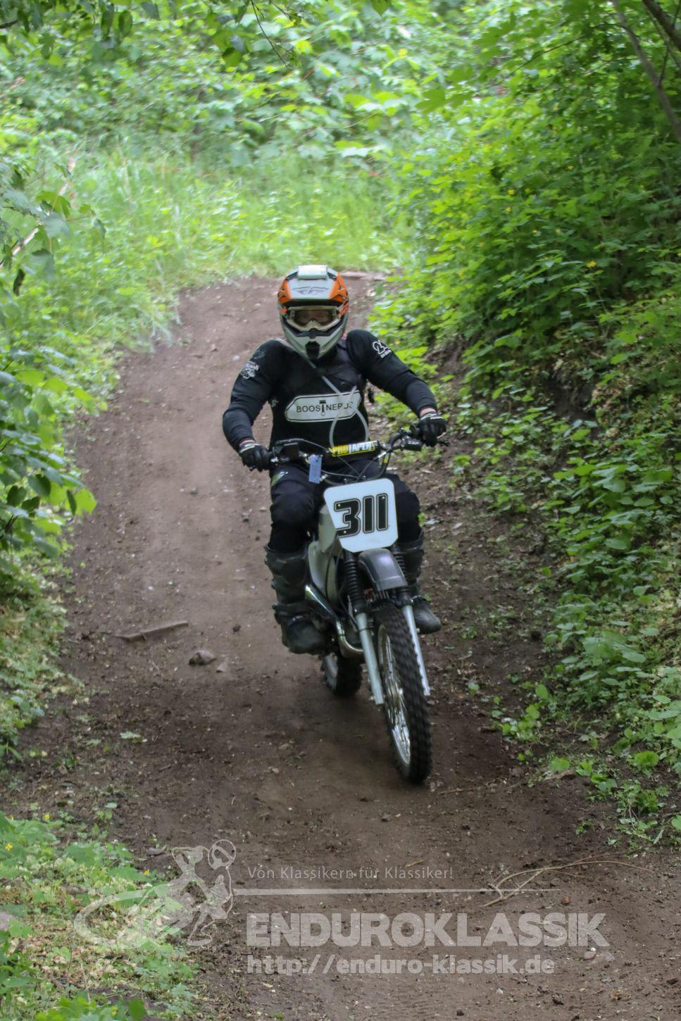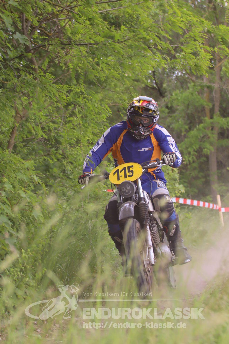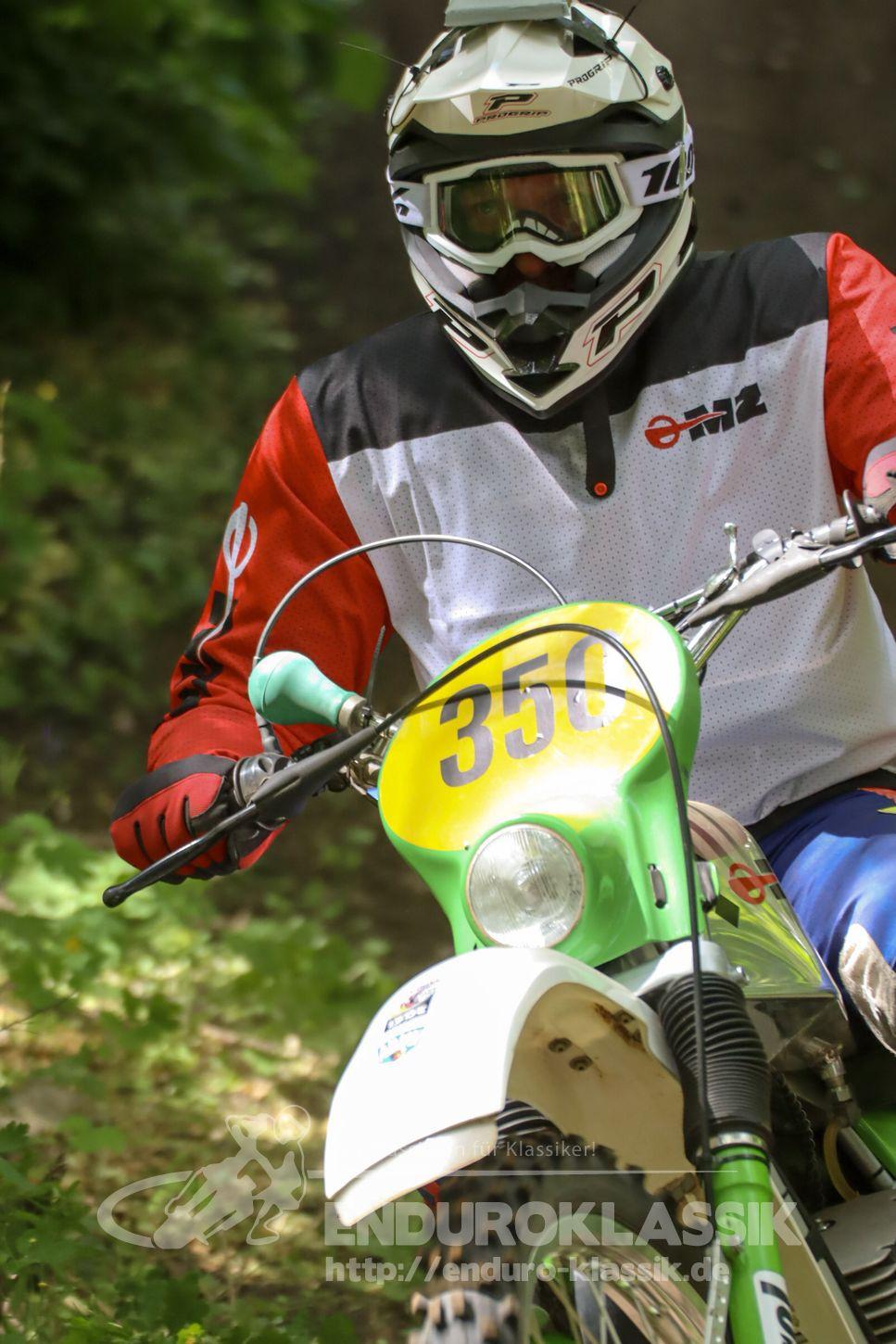 Bei bestem nordischen Wetter, viel Sonne bei einer frischen Brise, konnten mehr als 130 Teilnehmer am Samstag Vormittag ab 11 Uhr die Erste der geforderten 6 bzw. 7 Geländerunden in Angriff nehmen. Der Start erfolgte direkt neben dem neuen Fahrerlager, einer ausreichend großen, schön mit Kiessteinen befestigten Fläche, und unmittelbar angrenzend an das Hummelberg Enduro Gelände. Die von den Vorjahren bereits überwiegend bekannten Singletrails waren im Kernbereich des Waldes nochmals um einige Schleifen sowie sandige Auf- und Abfahrten erweitert worden. Das Befahren der Trails erforderte viel Geschick, gute Koordination und auch ordentlich Kondition, bei großzügig bemessenen Zeitvorgaben. Stehvermögen der Aktiven war zudem beim Absolvieren der Sonderprüfungen verlangt. Jede gefahrene Runde wurde gezeitet. Auf dem sandigen Geläuf mit Anliegern und Sprunghügeln wurden bei einer Fahrzeit von grob 4 bis 5 Minuten bei manchem zum Ende hin die Unterarme dann schon mal etwas dicker. Aber das tat insgesamt der Fahrfreude der Teilnehmer keinen Abbruch, auch wenn die Klassen mit den älteren Motorrädern, und somit mit den geringeren Federwegen, auf den besonders welligen Abschnitten mitunter schon so ihre Mühe hatten. Doch direkt nach dem Zieleinlauf konnte man sich am Imbiss mit bester Rostbratwurst oder Erbsensuppe schnell wieder stärken. Und bei der ganz zeitnah nach dem Zieleinlauf erfolgten Siegerehrung sah man dann durchwegs zufriedenes Grinsen, nach der staubigen und kräftezehrenden „Hummelberg-Intensivkur“. Gefallen hat, dass in den jeweiligen Klassen nicht nur die Plätze 1 – 3 mit schönen Plaketten ausgezeichnet wurden, sondern dass auch die Platzierungen 4 und 5 mitprämiert wurden. Eine schöne Geste, wie wir finden. Zum Auftakt in die 2025er Klassiksaison und zur persönlichen Fahrtechnik- und Konditionskontrolle war Schönebeck auf jeden Fall eine prima Sache. Den Jungs und Mädels vom MSC Schönebeck ist es gelungen, mit den vor Ort verfügbaren Gegebenheiten, für die Teilnehmer ein interessantes und wie beschrieben sehr intensives Endurosporterlebnis auf die Beine zu stellen.