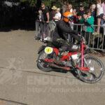 Paparazzi-Punkt 2 war die sehr knackige Auffahrt zum Rangauer-Tobel. Eine Auffahrt mit Schwierigkeitsgrad 10, aber auch hier bestgriffiger Boden mit einigen Querwurzeln, die es nicht leichter machten. Dennoch pfiffen da viele ungebremst hoch. Die wenigen, die stecken blieben, wurden sofort von den MSC-Isny-Helfern hervorragend unterstützt. Auch hier gab es eine sehr tolle und auch fordernde Umfahrung, die es in sich hatte, aber leichter war. Ein echter Held an der steilen Auffahrt war Peter Hoffman mit seiner alten 50ccm Kreidler -Wahnsinn, wie der da hochfuhr! Ein Honda-Fahrer mit einer TL 250 legte hier einen Absegler hin, der kurz den Atem stocken ließ – glücklicherweise blieb das aber alles ohne Folgen (siehe Filmclip).