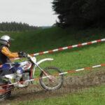 Start um 11.00Uhr. Am Rohrdorfer-Tobel DK2 Bereich waren die Bodenverhältnisse knackig und auch rutschig, aber alles Rahmen des Machbaren. Die Wiesenhänge von 50ccm bis BMW-wuchtig gut fahrbar, da war die lange Querumfahrung, wo es auch an vielen anderen kniffligen Stellen in hervorragender Weise angeboten wurde, geradeaus unterhalb der Wiesen matschiger. Klasse: Viele Hausbesitzer saßen auf Stühlen draußen, winkten und feuerten an. Dies Verhalten fand man an sehr vielen Ecken – die Allgäuer mögen den Klassiksport einfach!